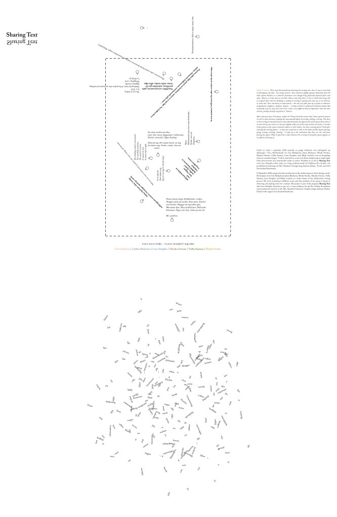 a week of collective writing in public space, with geir byrkjeland, johan bäckman, marika orenius, vidha saumya, lena séraphin and mindy svenlin, and maiju loukola as a body witness of the collaborative writing process